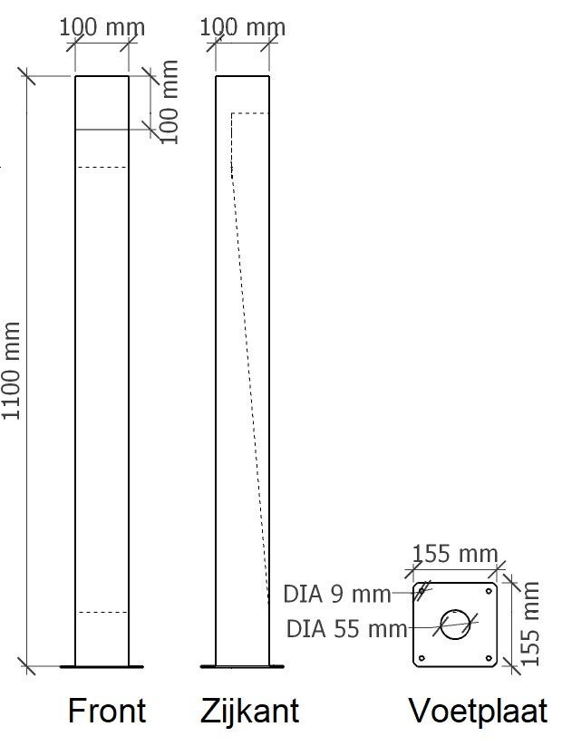 maatvoering:bovenzijde 150*100mm - kolom 100*60mm. complete hoogte 1100mm.