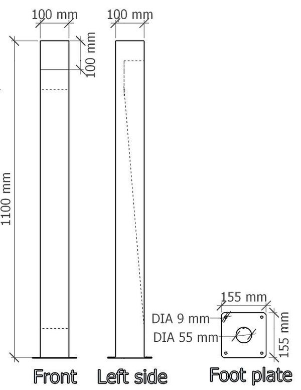 afmetingen: 100*100*H.1100mm