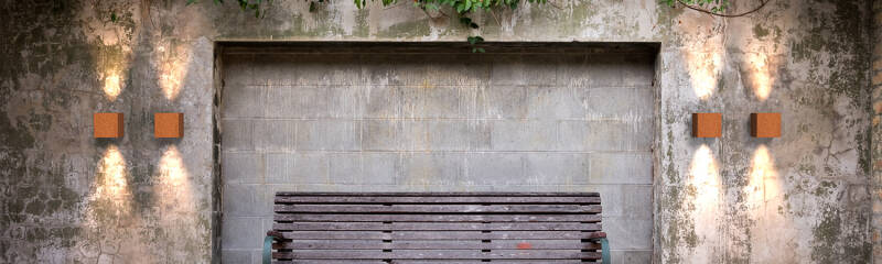 GARDD® wandlamp CUBE cortenstaal H.100mm. inclusief LED lamp 3000 kelvin, 6watt, 230 volt.