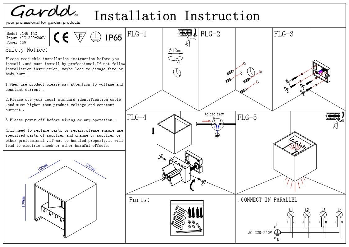 GARDD® wand lamp CUBE Aluminium H.100mm. inclusief LED lamp 3000 kelvin, 6watt, 230 volt.