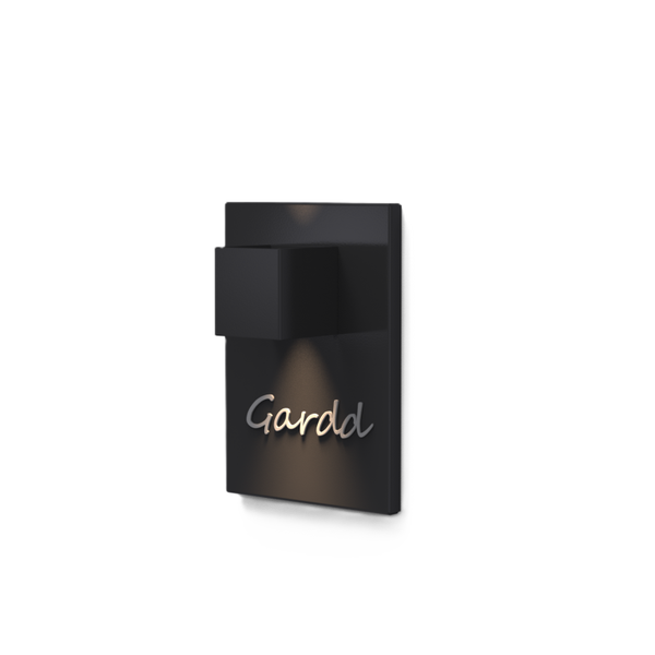 GARDD® wandpaneel in Aluminium (omgezet 20mm) met gemonteerde CUBE LED. inclusief LED lamp 3000 kelvin, 6watt, 230 volt.